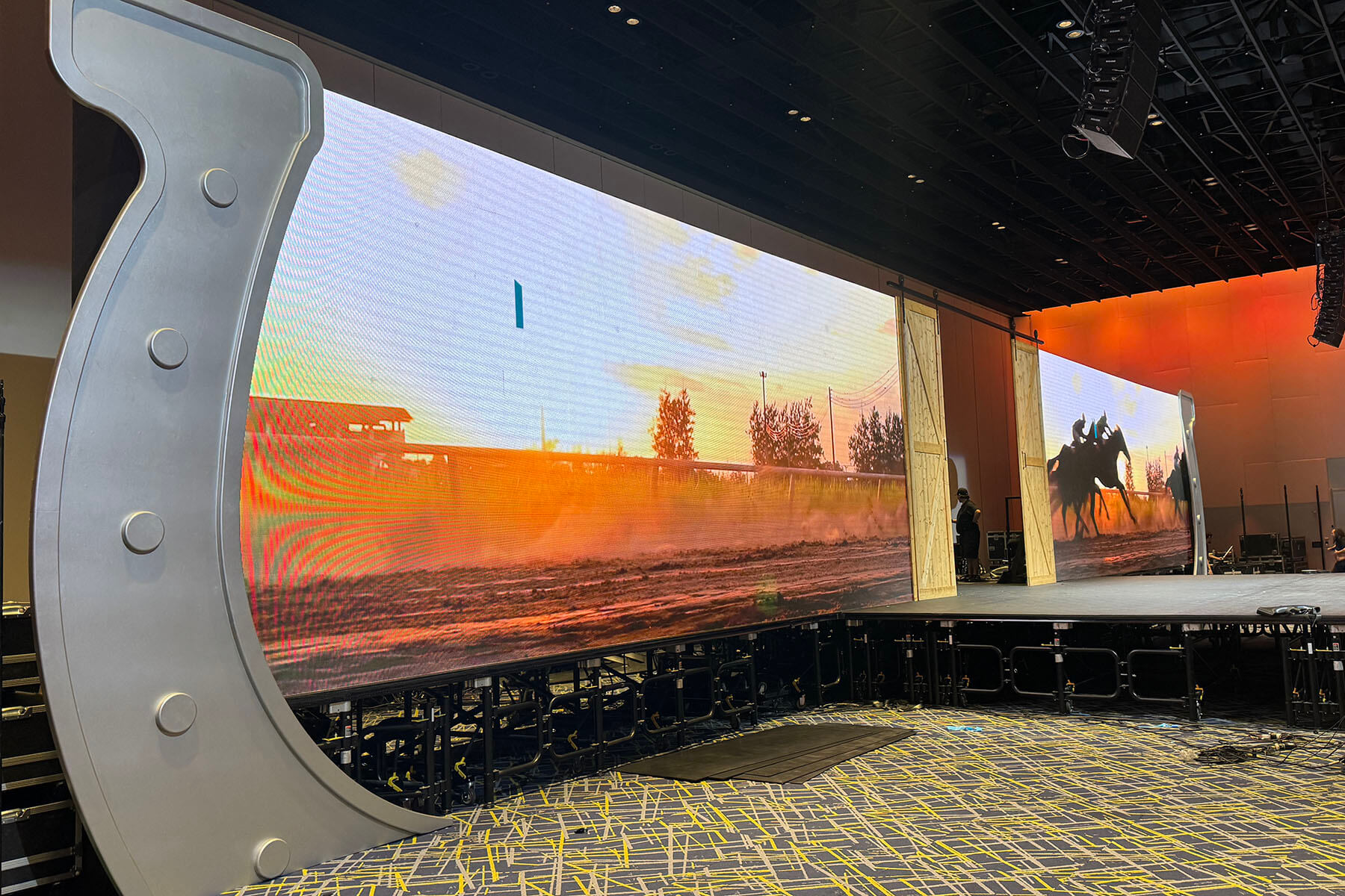 - Two 16’ tall half-horseshoes flanking the stage
