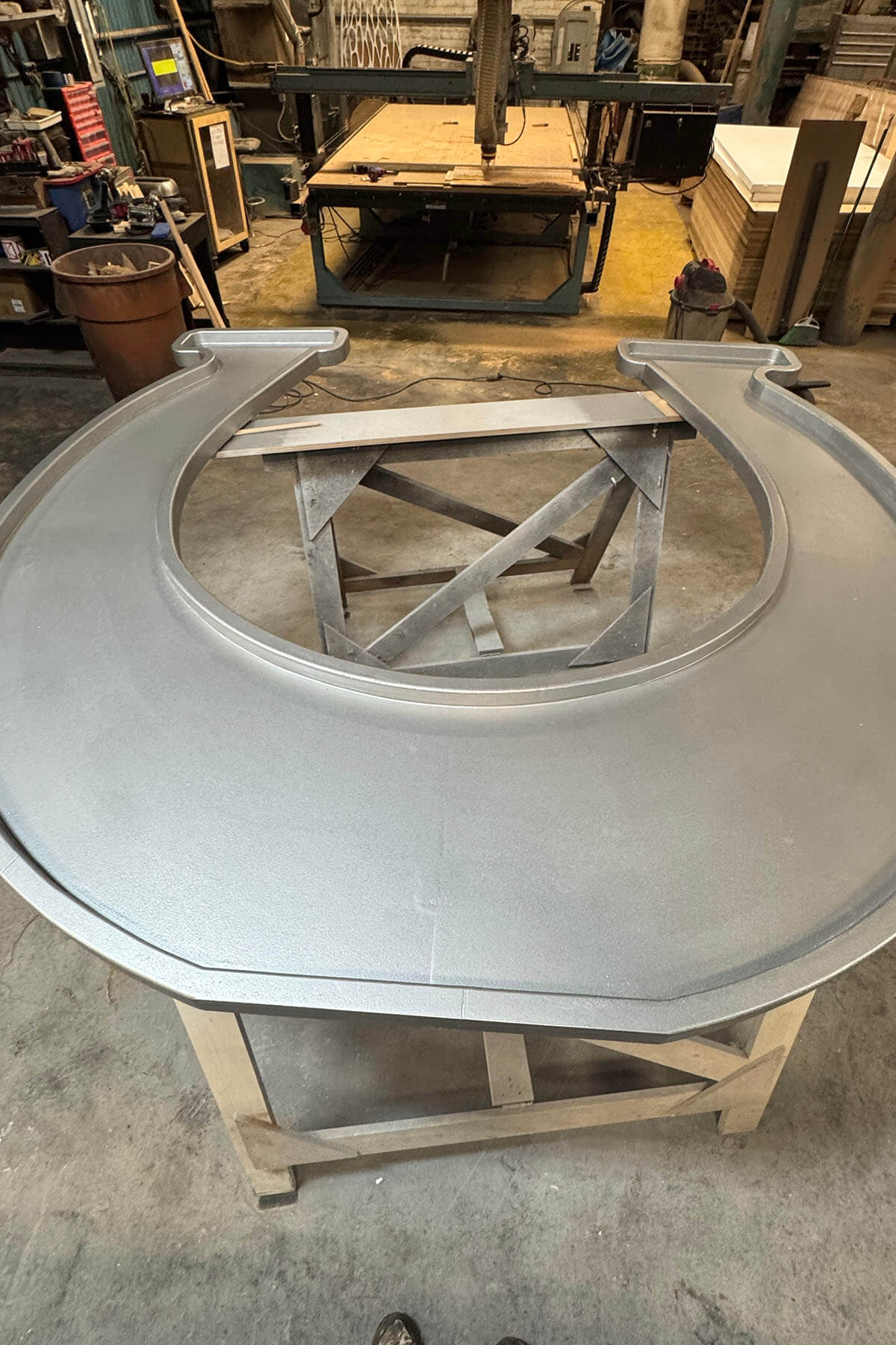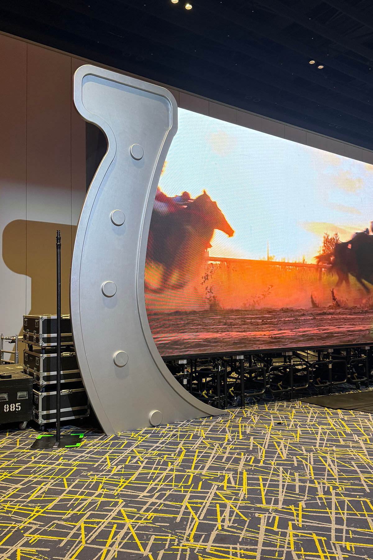 The custom horseshoes were precision cut on our CNC machine from MDF and finish painted to achieve a clean, professional look suitable for a large-scale convention setting.