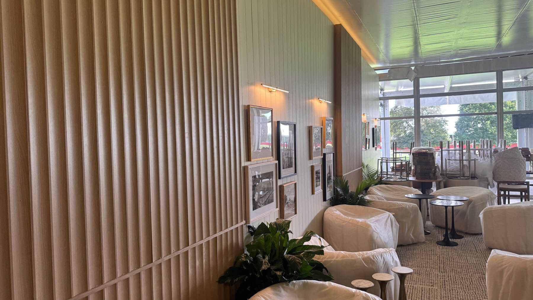 Our team efficiently constructed all components of the Patina Group Suite in Louisville, Kentucky, and ensured the safe delivery to Bethpage, New York. Our on-site installation team ensured an accurate and efficient installation that aligned with Patina's vision and created the perfect space for guests to mingle and socialize through the Ryder Cup.