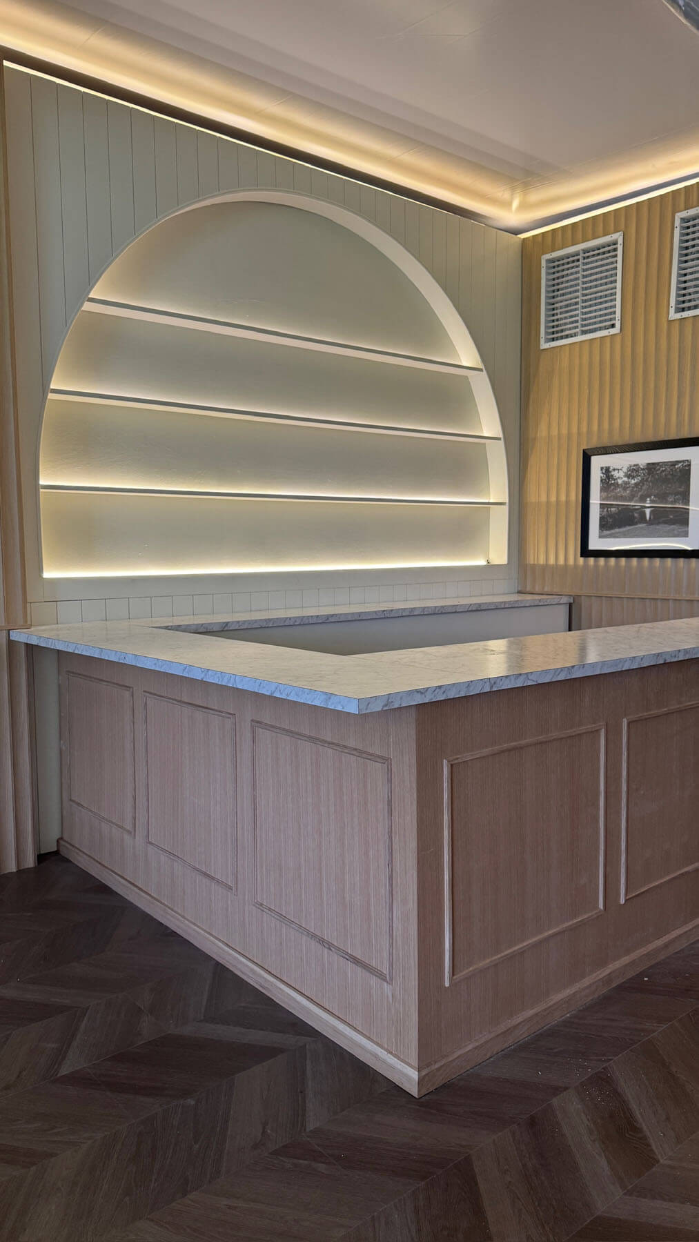 Partnering with the world-class Patina Group and Barton G, Infinity played a key role in creating an immersive lounge for guests, creating an air of luxury and class at the preeminient Ryder Cup 2025. Our team was involved with the design and construction of the entire Patina Group suite, from the walls and lighting to the bar.
