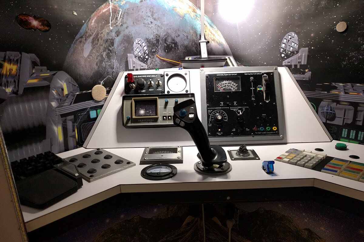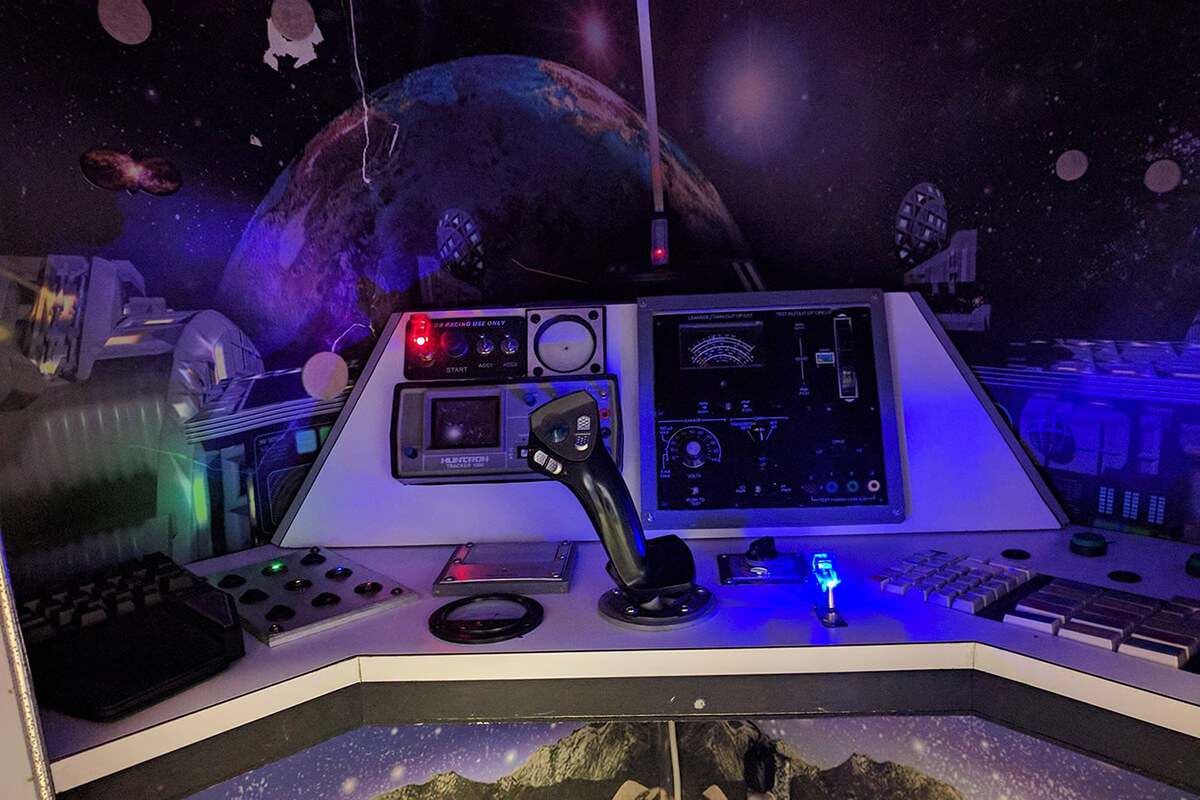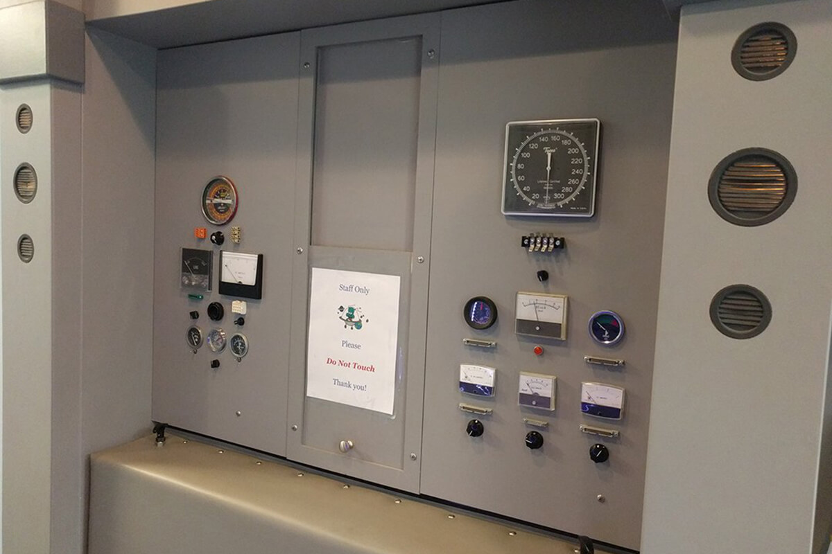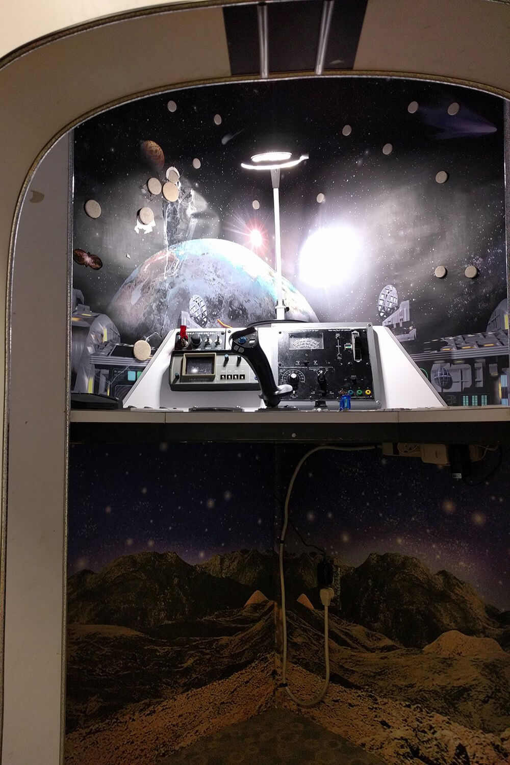 Kids enter the Space Room through an interactive bulkhead hallway that features a pneumatically controlled bench that swings out at the push of a button and a one-way mirror that allows nervous parents or social works to observe the child patients. As they enter into the immersive therapy room filled with interactive consoles and gadgets, a chalkboard “screen” acts as a communication and drawing space for the kids and the NASA rocket ship helps them to relax as they engage with the therapist.
