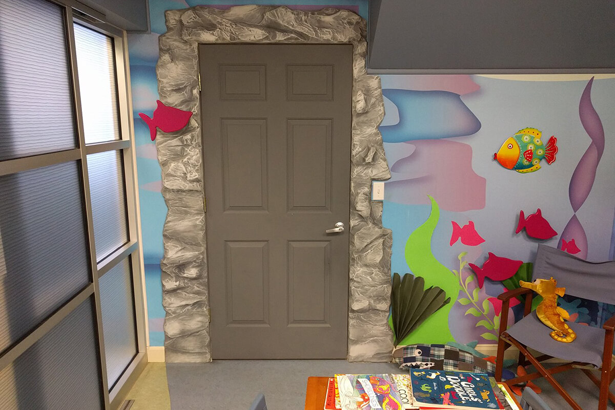 Challenged to channel our inner child, we helped bring these undersea-themed children’s psychology waiting room and therapy room to life.