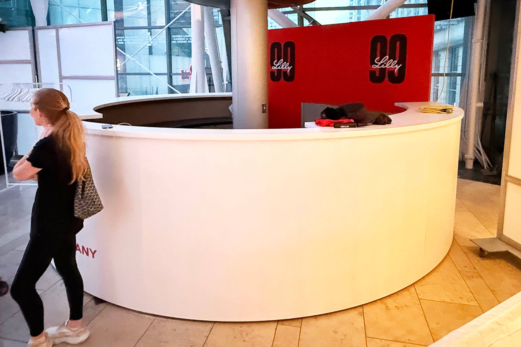 In partnership with Pendulum Creative, Infinity designed and fabricated a unique registration desk at the Indianapolis Artsgarden for the WNBA. The desk was strategically designed to hide the preexisting service desk to create a new, engaging atmosphere for guests and featured a unique circular shape and sleek white finish.